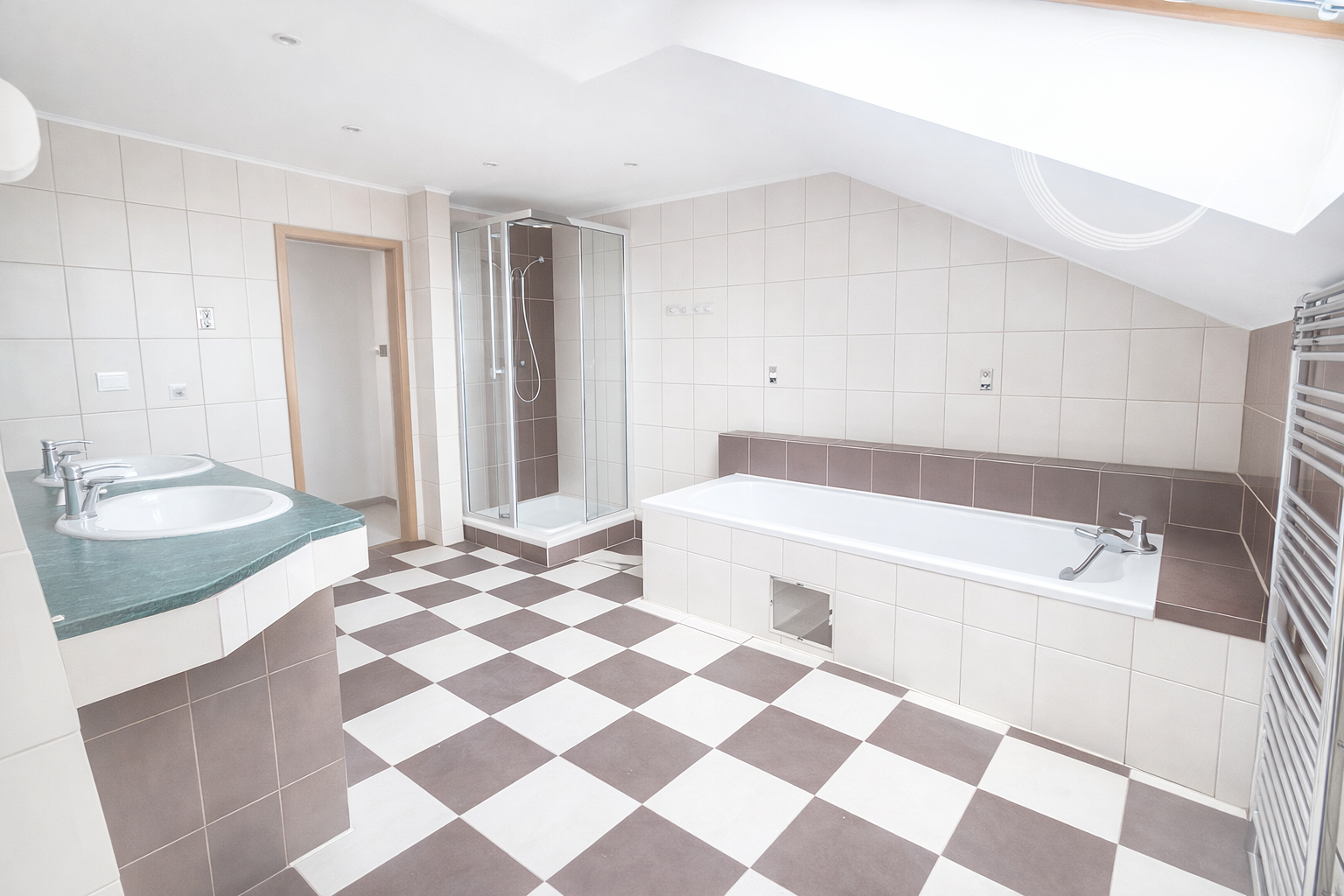 • štandardné vybavenie kúpeľne: vaňa, sprchový kút, umývadlo, obklady